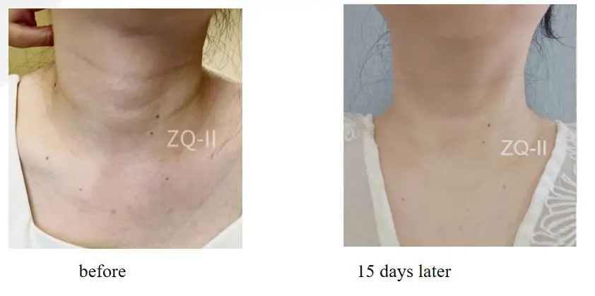 1,0 mm meso -pistol injicerad, 24 dagar senare Melasma minskades avsevärt, inflammation i muskelbasen minskades avsevärt, porantalpunkter minskades avsevärt, kunden är mycket tillfredsställande